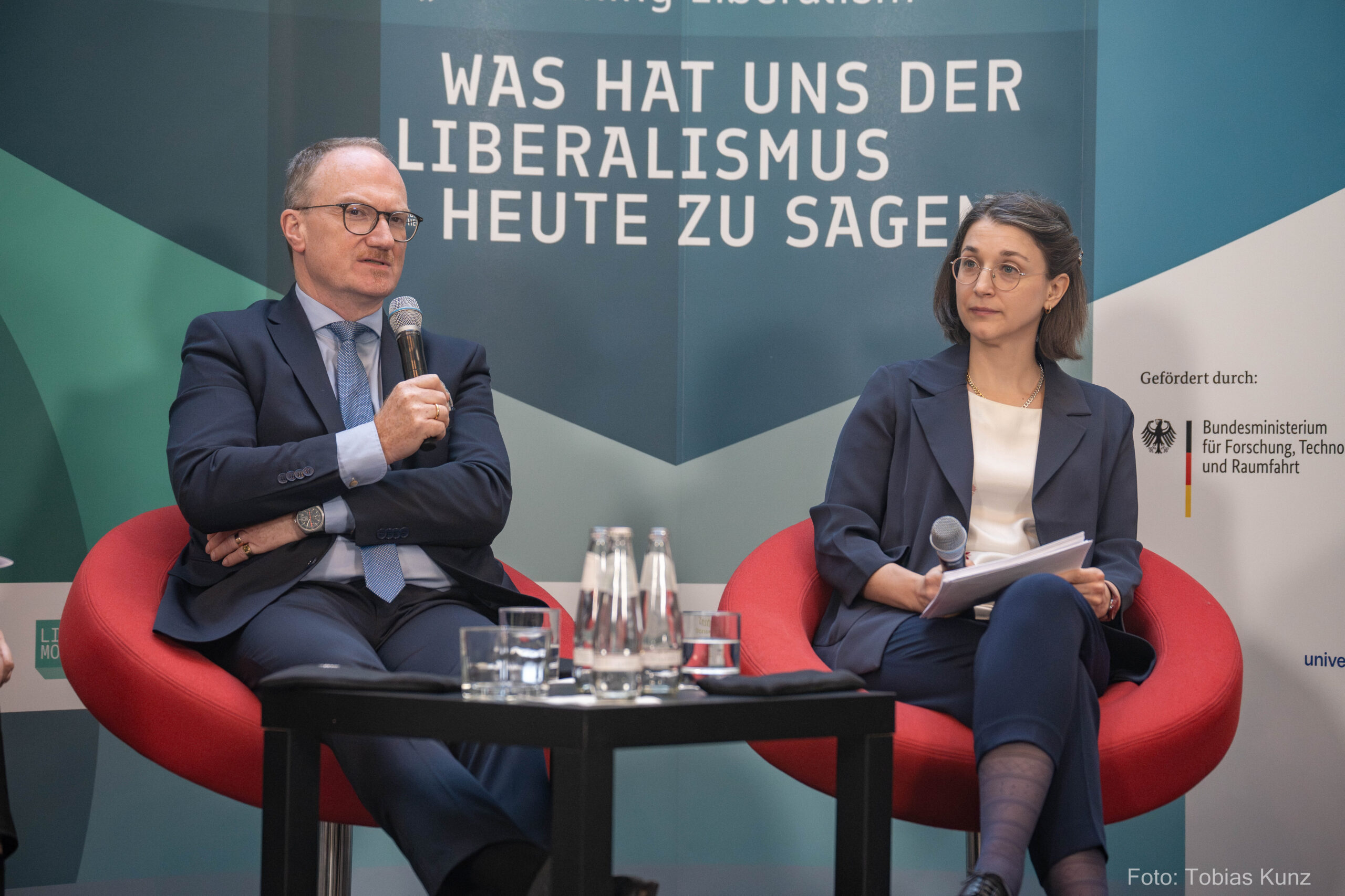 Wie produktiv offene Differenzen im liberalen Diskurs sein können, machte das Streitgespräch zwischen Karolina Wigura (Zentrum Liberale Moderne) und Thomas Biebricher (Universität Frankfurt) deutlich. Beide analysierten die Krise des Liberalismus aus unterschiedlichen theoretischen und historischen Perspektiven: